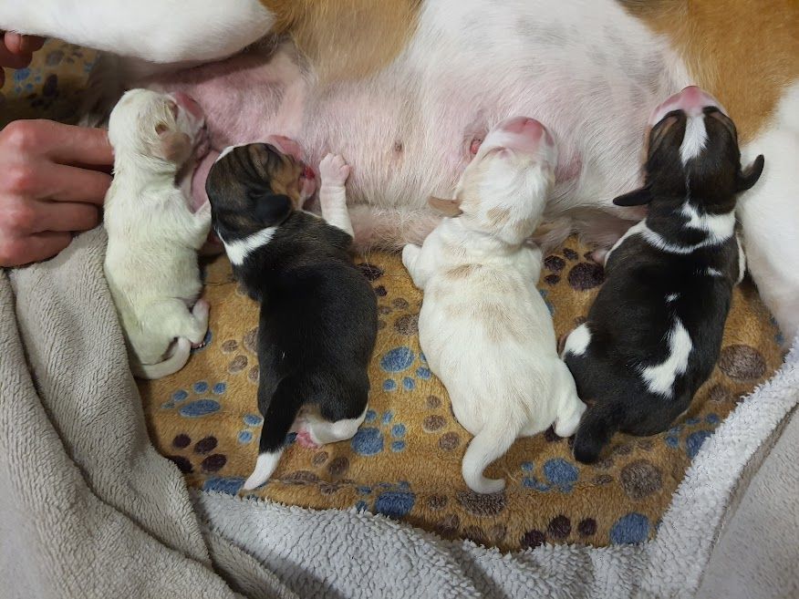 In einer aüßerst komplizierten Geburt, in der wir einen Jungen verloren haben, hat meine Babyplüsch am 09.11.2020 4 wunderschönen Welpen das Leben geschenkt.